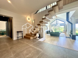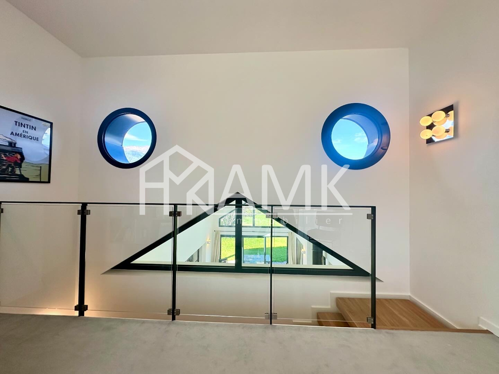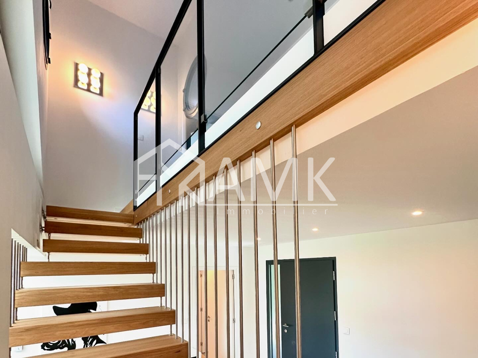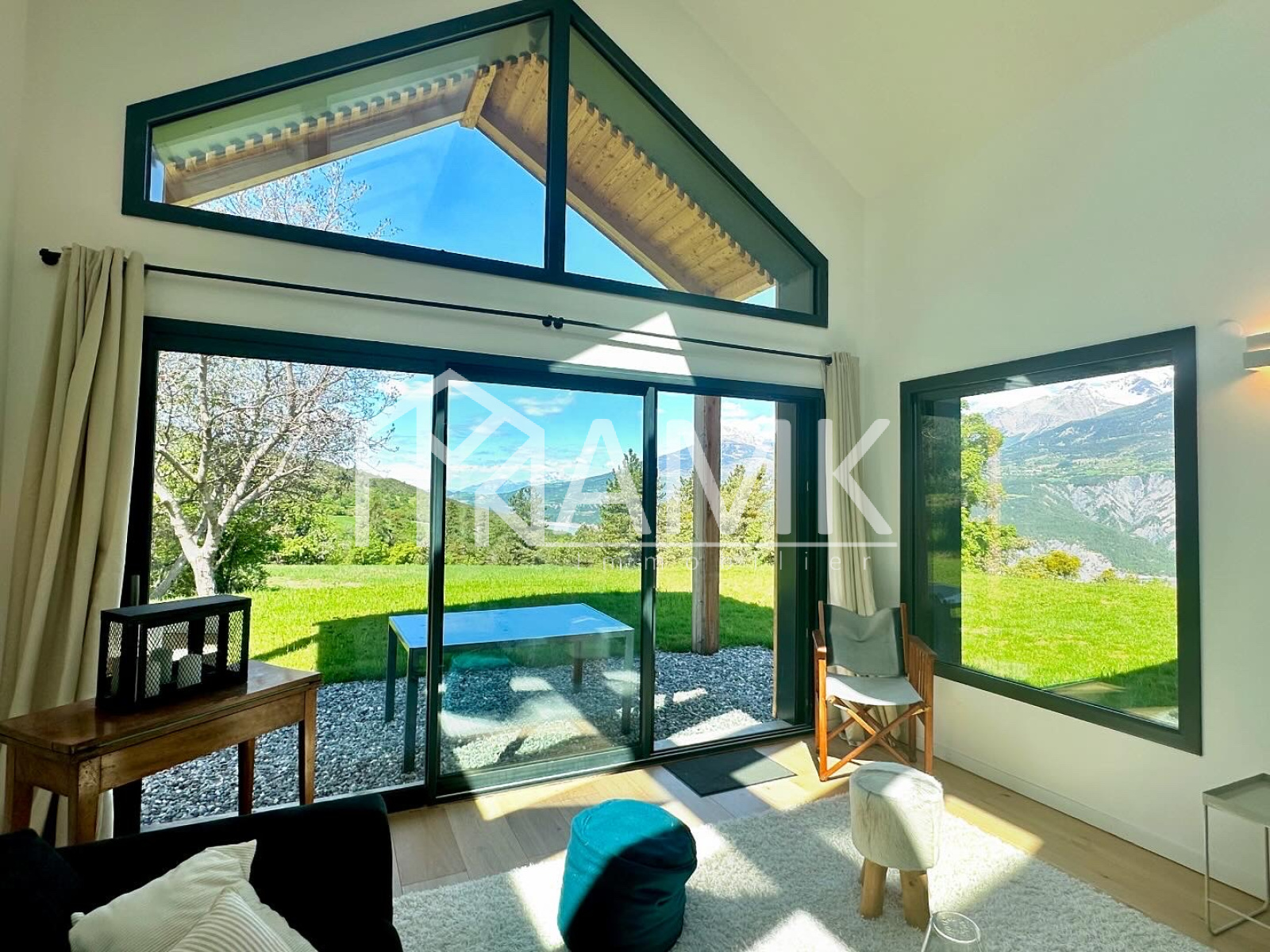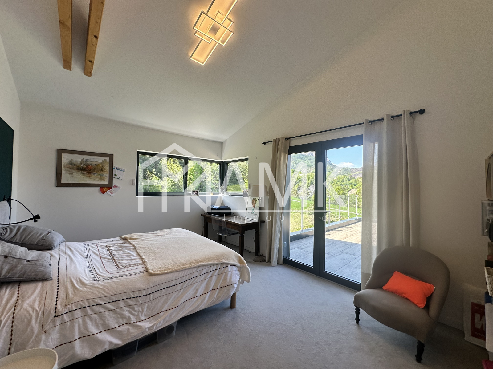 -grande pièce de vie avec hauteur sous plafond ;