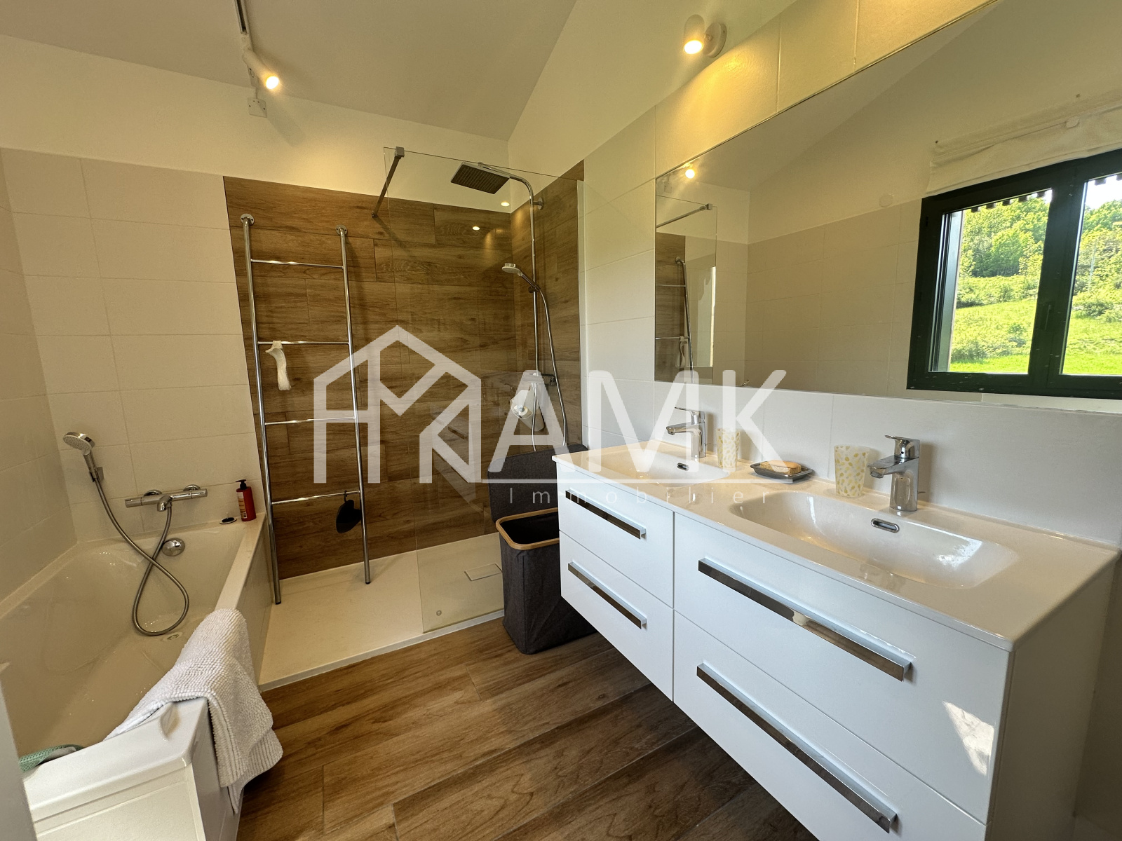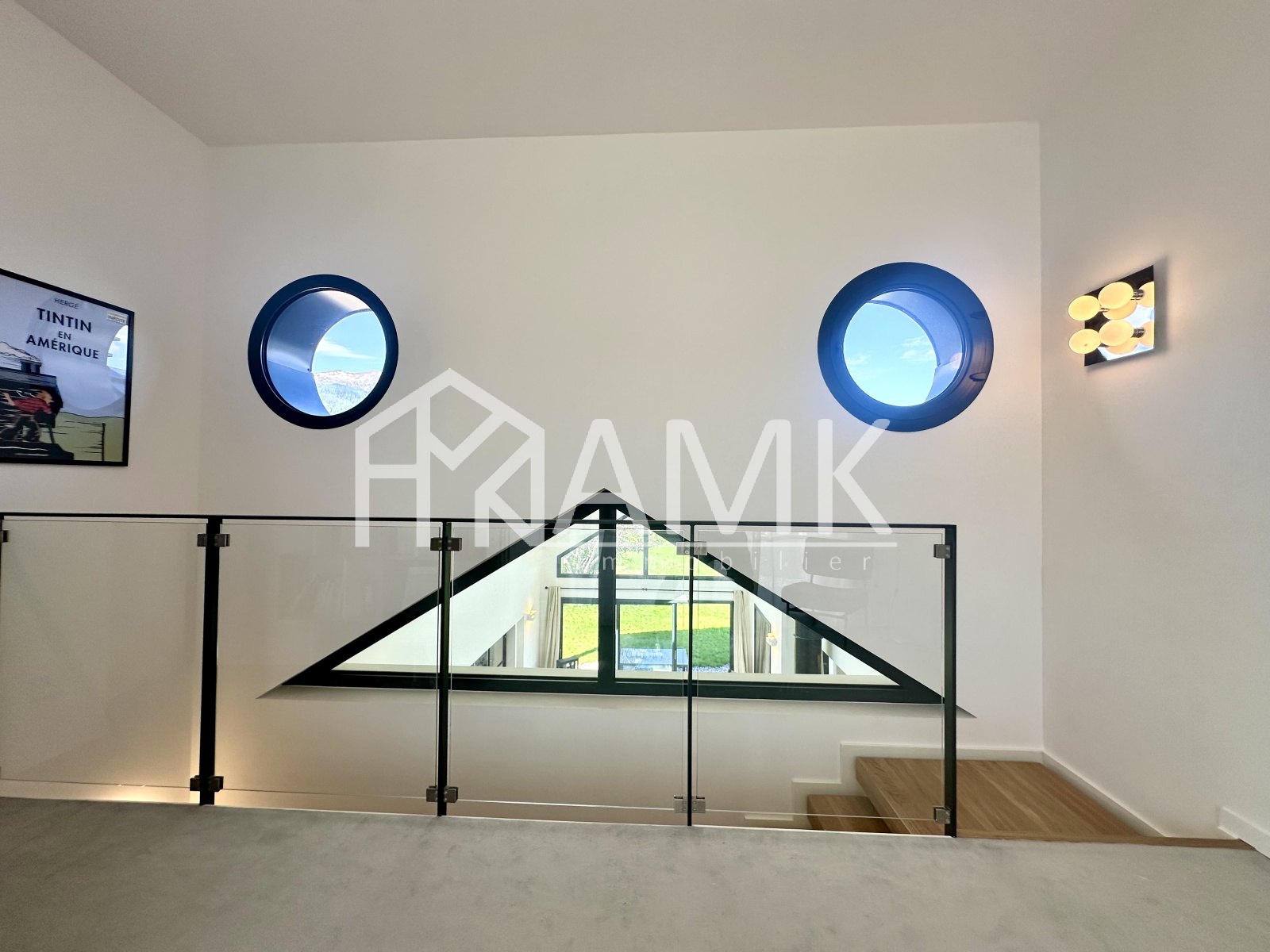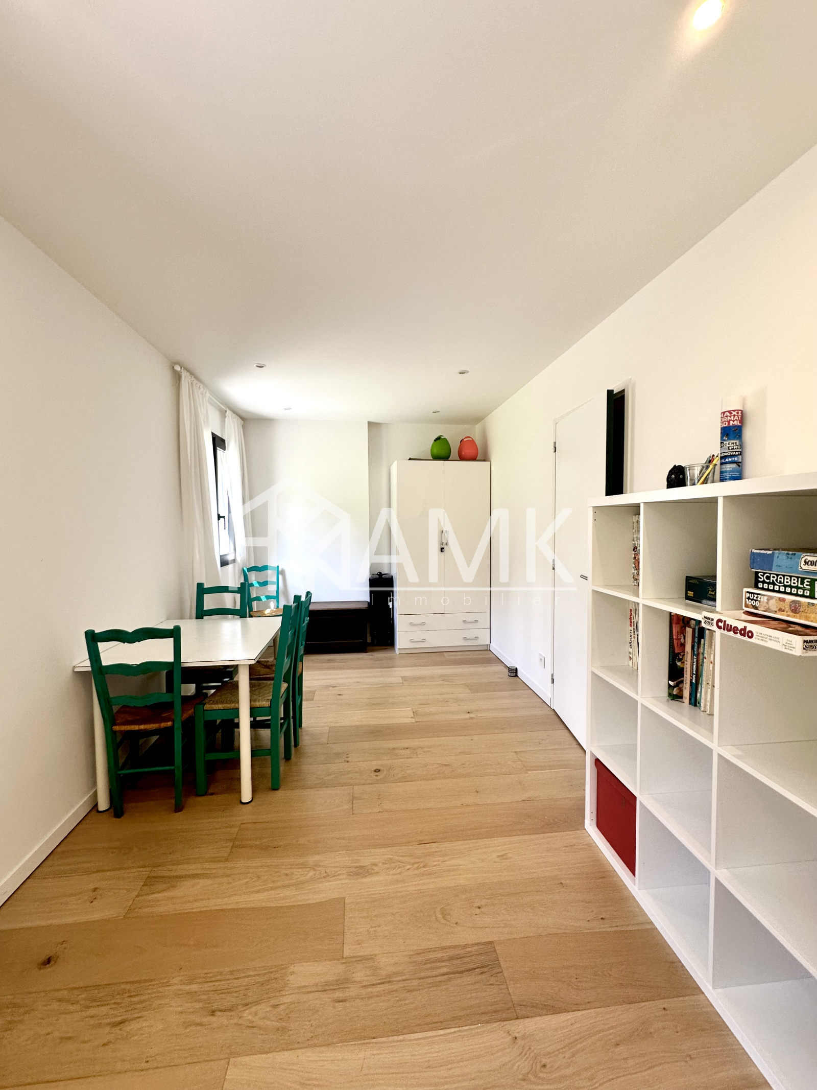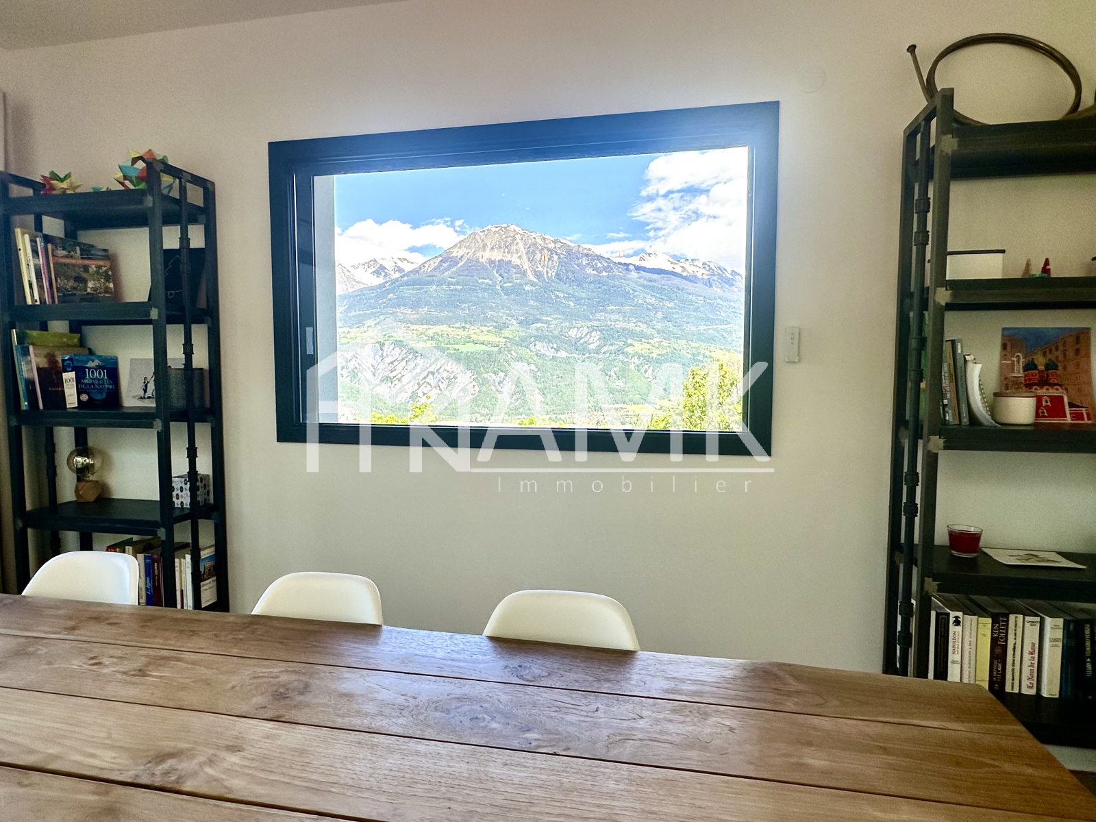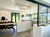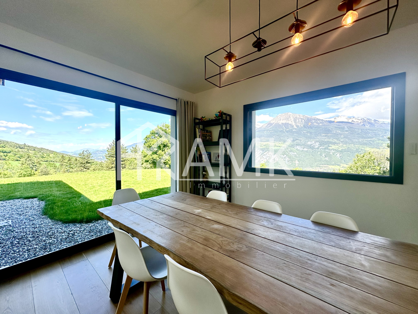 -cuisine équipée intégralement (four , réfrigérateur américain, plaque induction, grille pain, bouilloire, cafetière, lave vaisselle, ...) + table 6/7 personnes ;