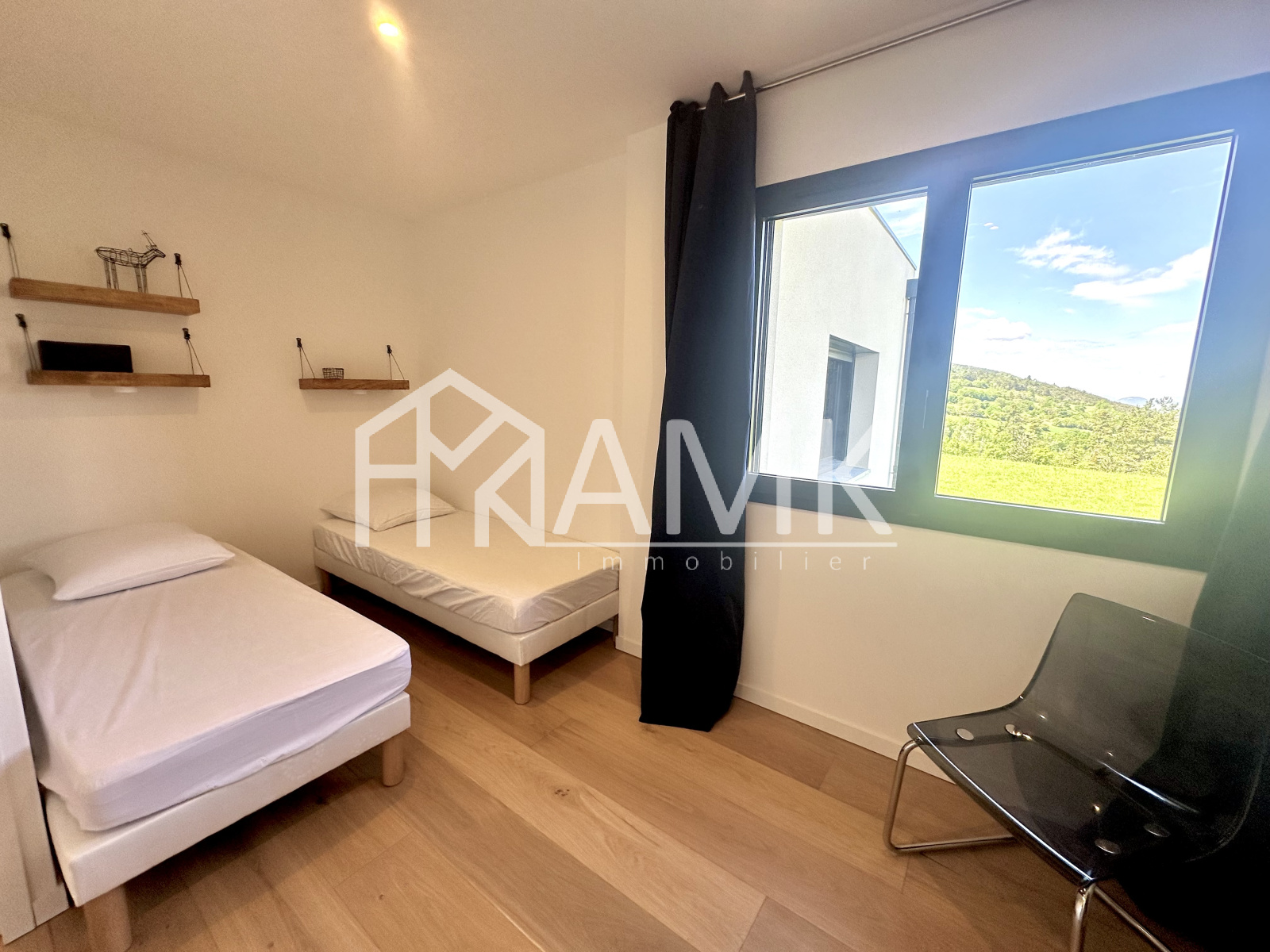 -deux chambres avec deux lits simples chacun 80cm (possibilité de préparer les deux chambres en lit double 160cm) ;