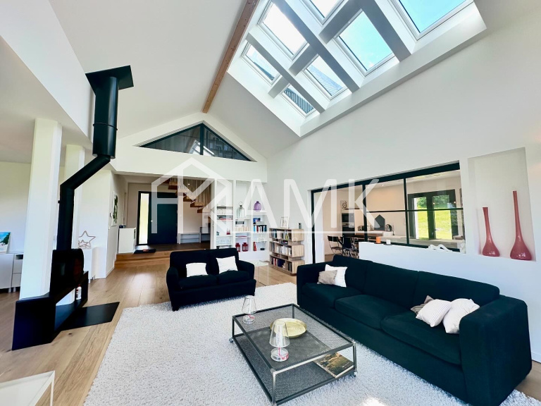 Dans un environnement tranquille et préservé, le vaste jardin entourant la maison en lisière de forêt assure une intimité totale.