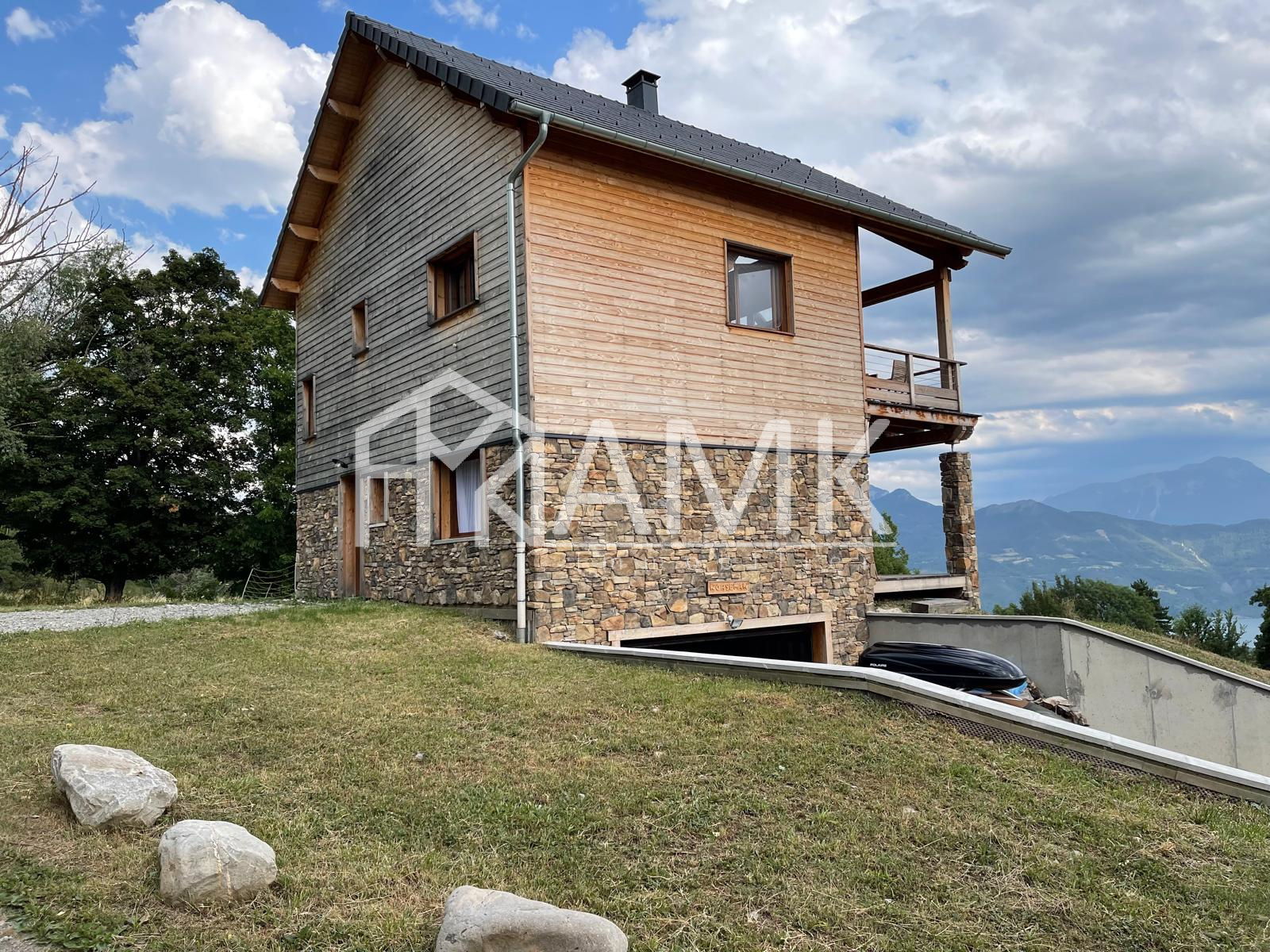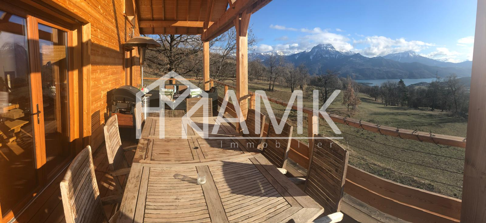 Depuis les grandes baies vitrées du salon, laissez-vous émerveiller par une vue panoramique à couper le souffle sur le lac de Serre-Ponçon et les majestueuses montagnes environnantes.