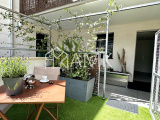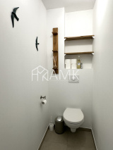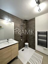 Salle de bain moderne : Avec une douche, une vasque + wc individuel.