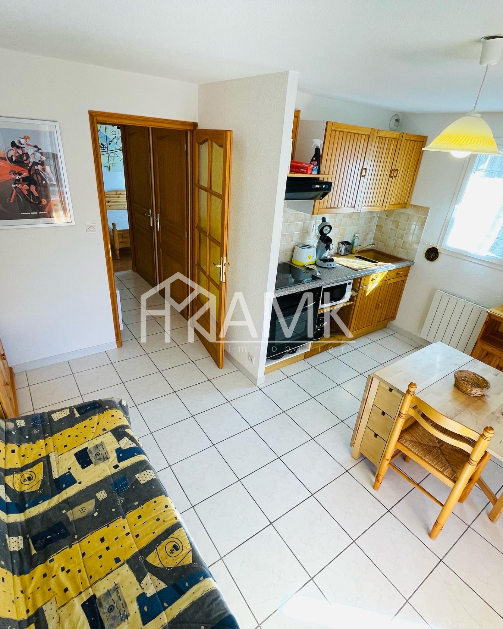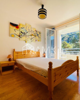 -Une chambre avec lit 140x200cm avec rangement et accès balcon.