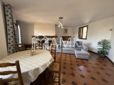 -Salon/salle à manger avec TV, canapé, grande table, balcon