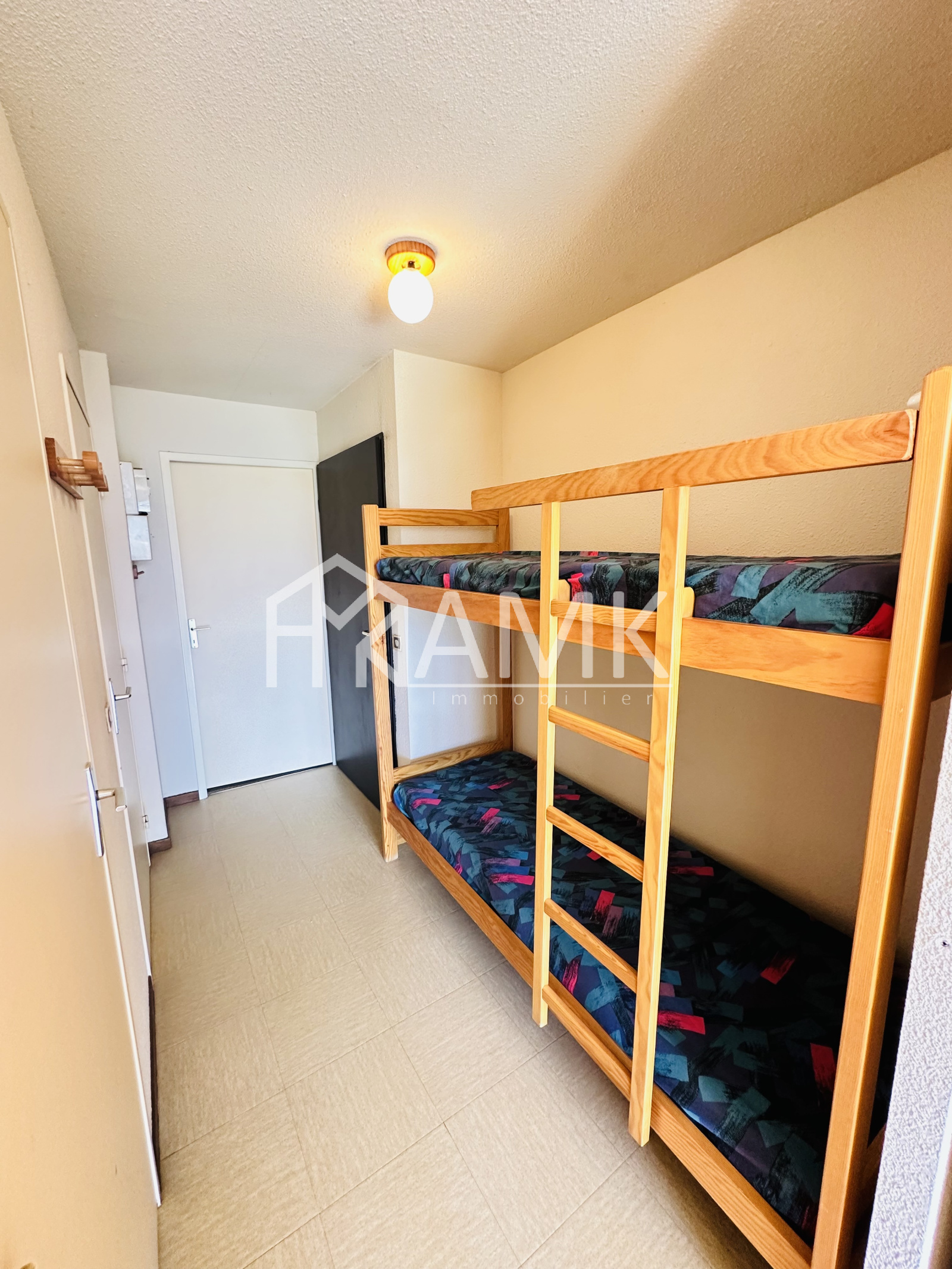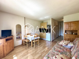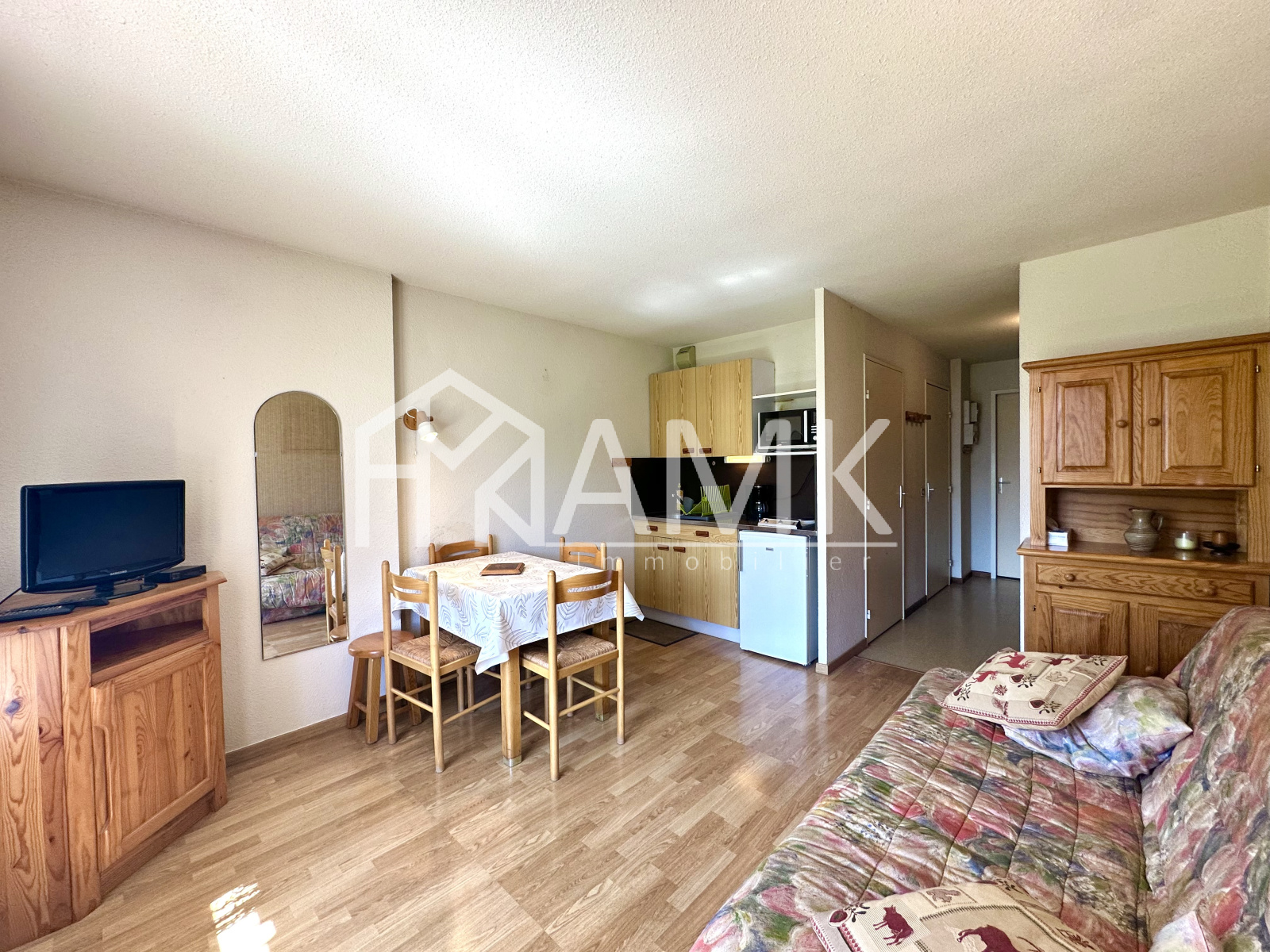 -Pièce principale avec cuisine (micro onde, petit réfrigérateur, grille pain, cafetière à filtre, plaque électrique, clic-clac, TV,...).
