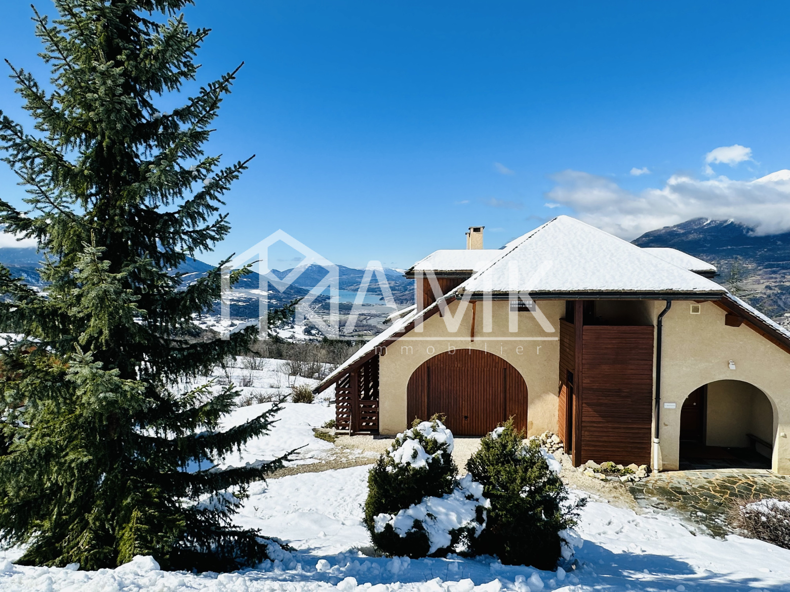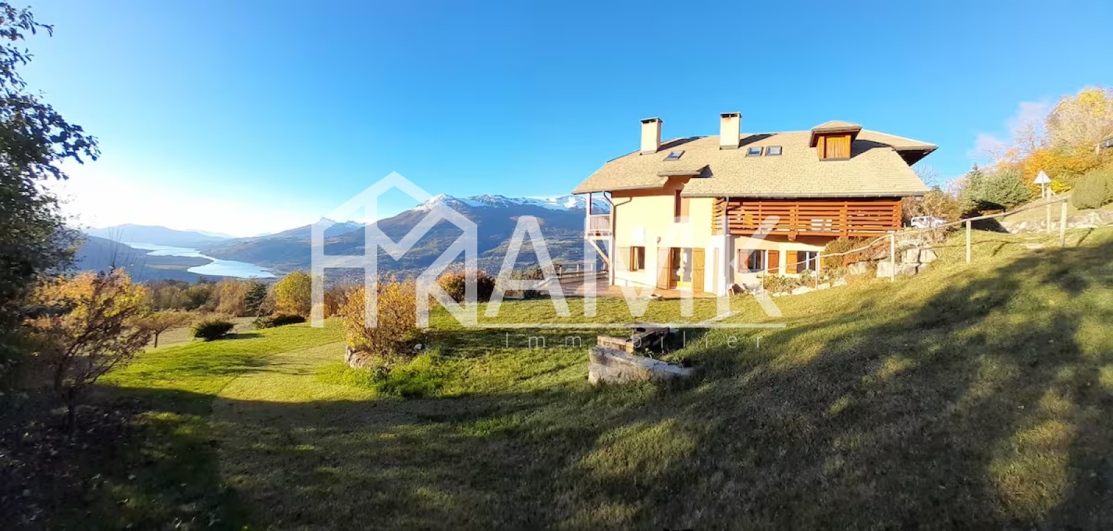 Situé dans le petit village de Saint-Sauveur à 1.200 m d'altitude, entre lac et montagnes, le chalet offre une superbe vue panoramique sur le lac de Serre-Ponçon et le massif des Ecrins.