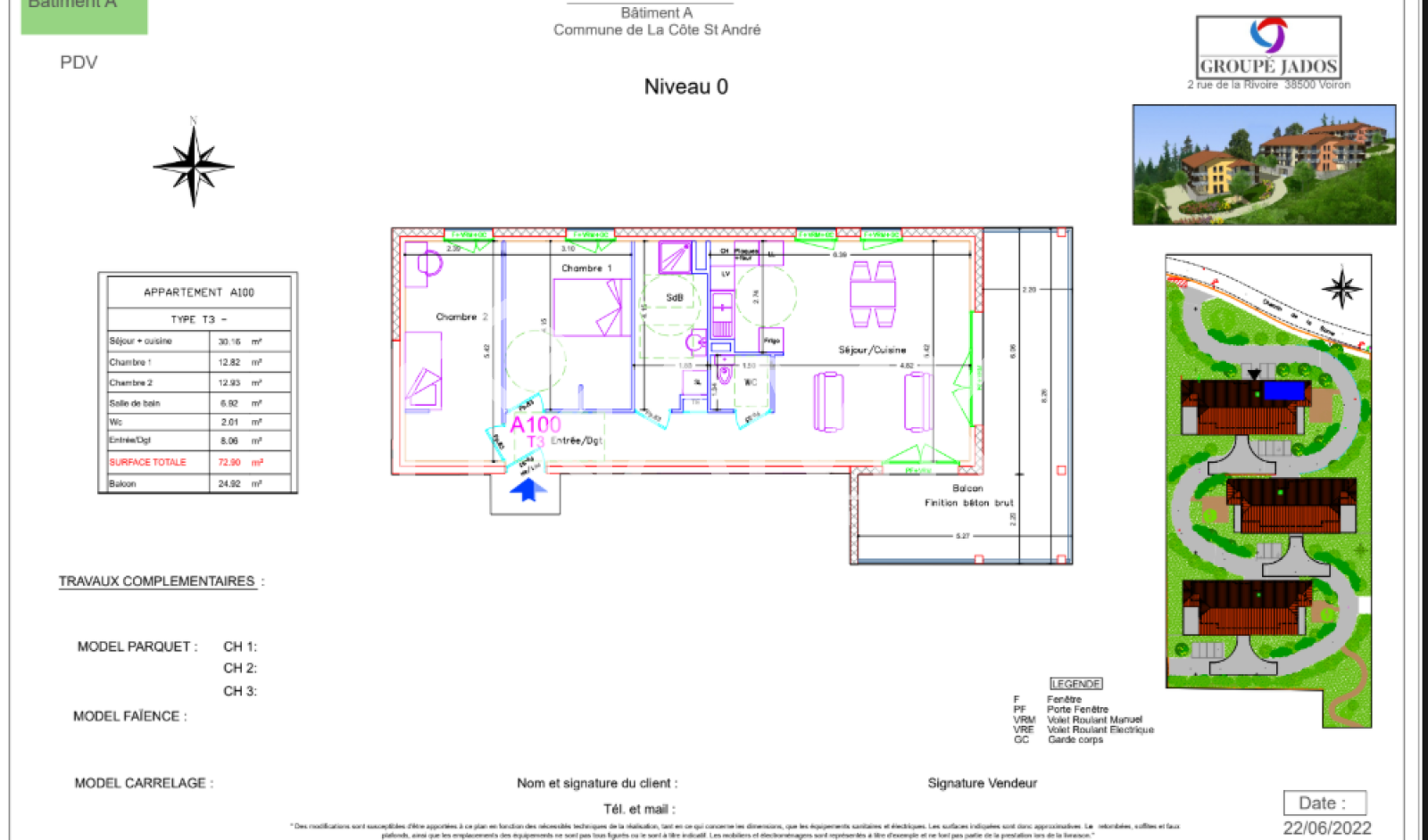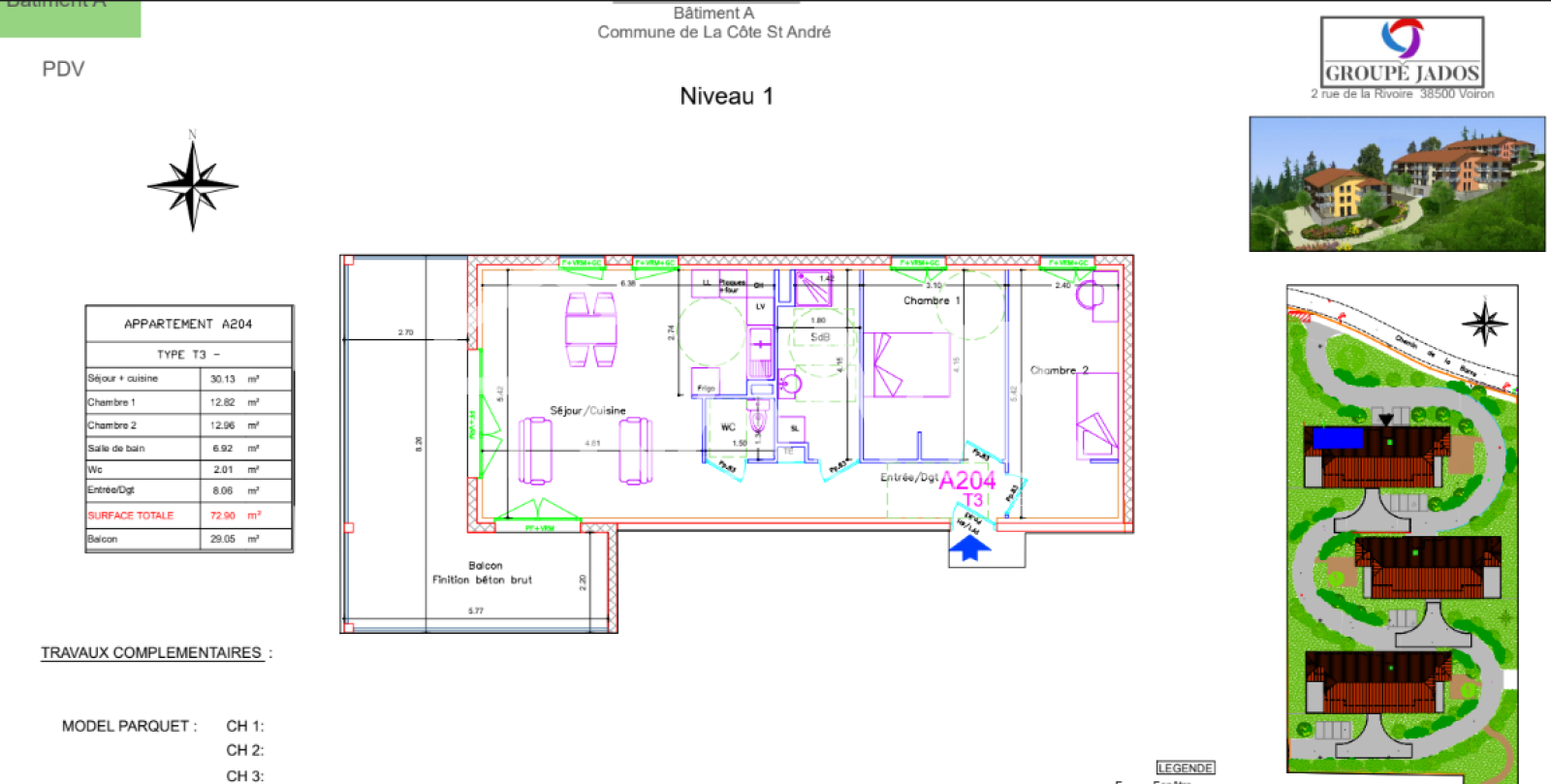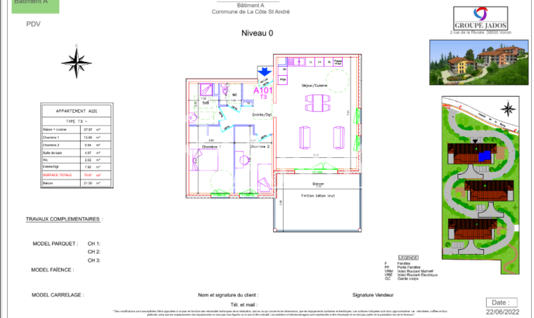 lot A 001: 203 528 € T3 – 76 m² + terrasse 59 m²
