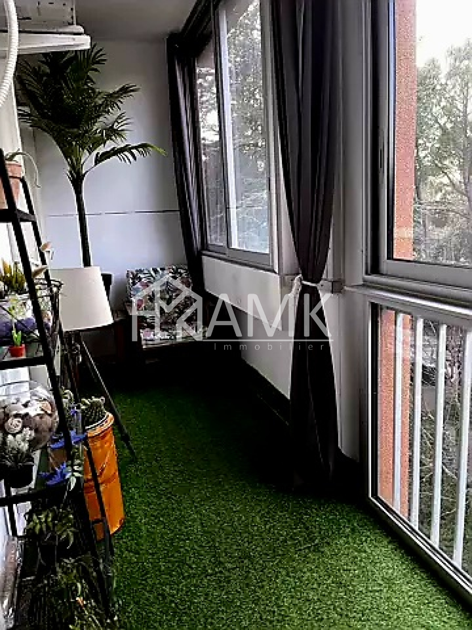 Dès l'entrée, un grand placard accueille les affaires du jour. La pièce de vie se prolonge par un balcon fermé (7 m²), un espace modulable qui devient tour à tour coin lecture, bureau ou petit jardin intérieur.